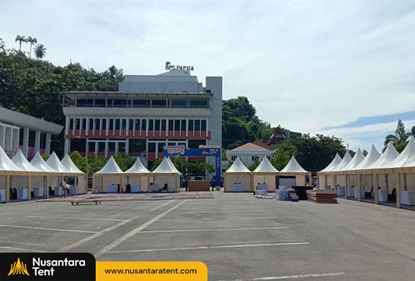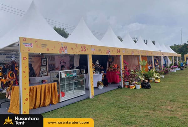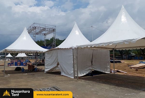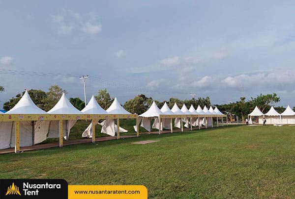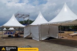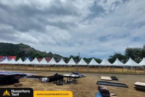 Bahan sarnafil yang digunakan memiliki ketahanan terhadap suhu ekstrem dan UV, sehingga tenda tetap terjaga kualitasnya dalam waktu lama. Selain itu, desain modularnya memudahkan pemasangan dan penyesuaian sesuai dengan kebutuhan acara. Tenda Sarnafil juga memberikan ruang yang luas dan nyaman, memungkinkan para tamu menikmati acara dengan tenang dan nyaman. Dengan keunggulan tersebut, tenda Sarnafil memastikan bahwa acara Anda terlaksana dengan sukses tanpa khawatir tentang cuaca.